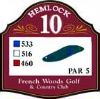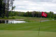 This hole is the longest par 5 on the course, 516 yards. It has 4 ponds that line the entire right side of the fairway and green. Should you avoid the ponds and finally reach the green, you will find it displays a severe slope from left to right.